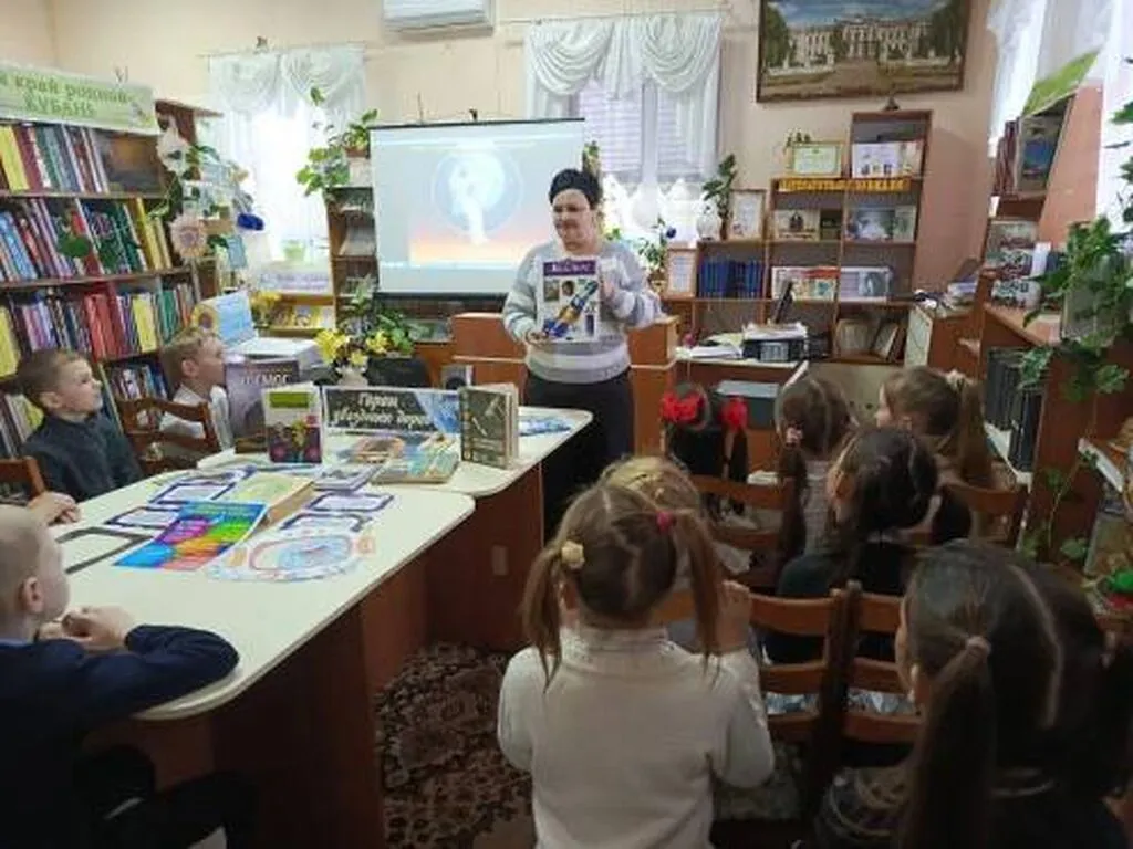 На встрече в Кубанскостепной центральной библиотеке ко Дню космонавтики, для учащихся 2 класса ООШ 18, директор библиотеки Алехина Наталия рассказала ребятам об удивительных книгах о космосе!