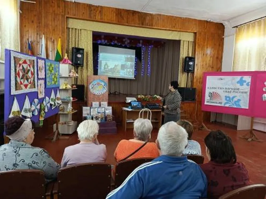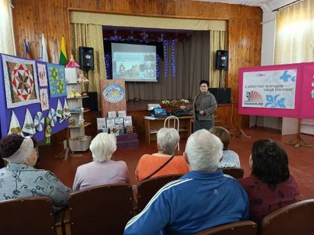 Библиотекарь провела познавательную презентацию, в ходе которой рассказала о многонациональном составе России и его исторической обусловленности, показала, как сотрудничество разных народов способствовало развитию страны, привела яркие примеры совместной деятельности и взаимопомощи в разные периоды истории.